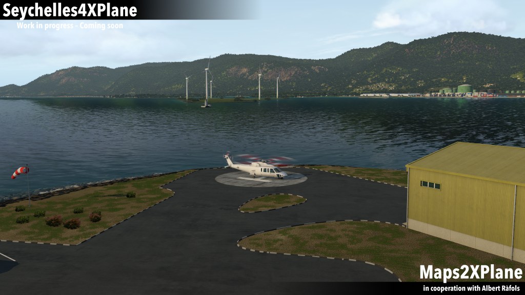 The snapshots show the Naval base near Port Victoria, and the helipads on La Digue and Silhouette Island. These heliports will be available for heli-simmers in addition to the landing sites at the thirteen airfields, the Regional Airport on Praslin and the International Airport on Mahé.