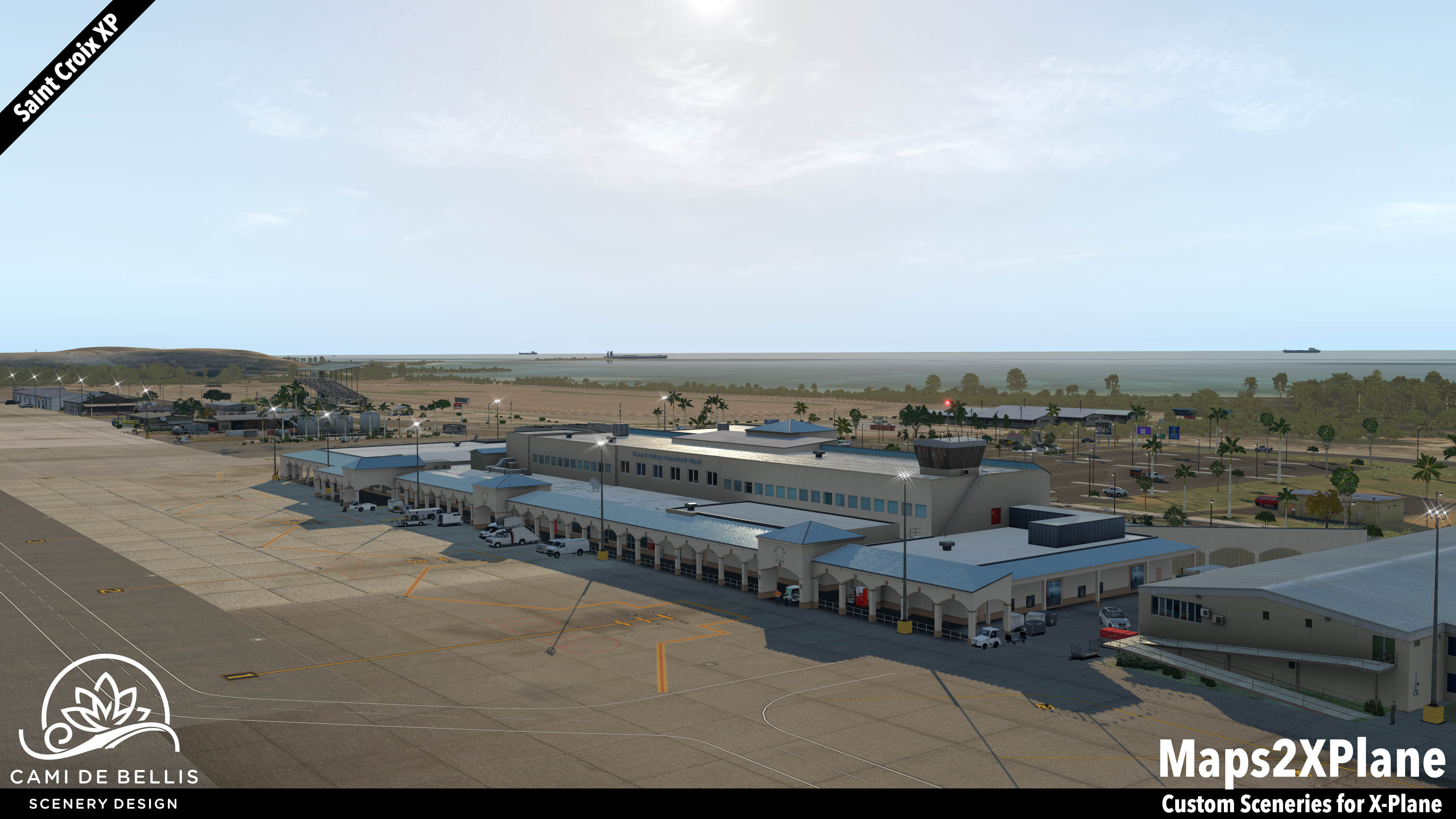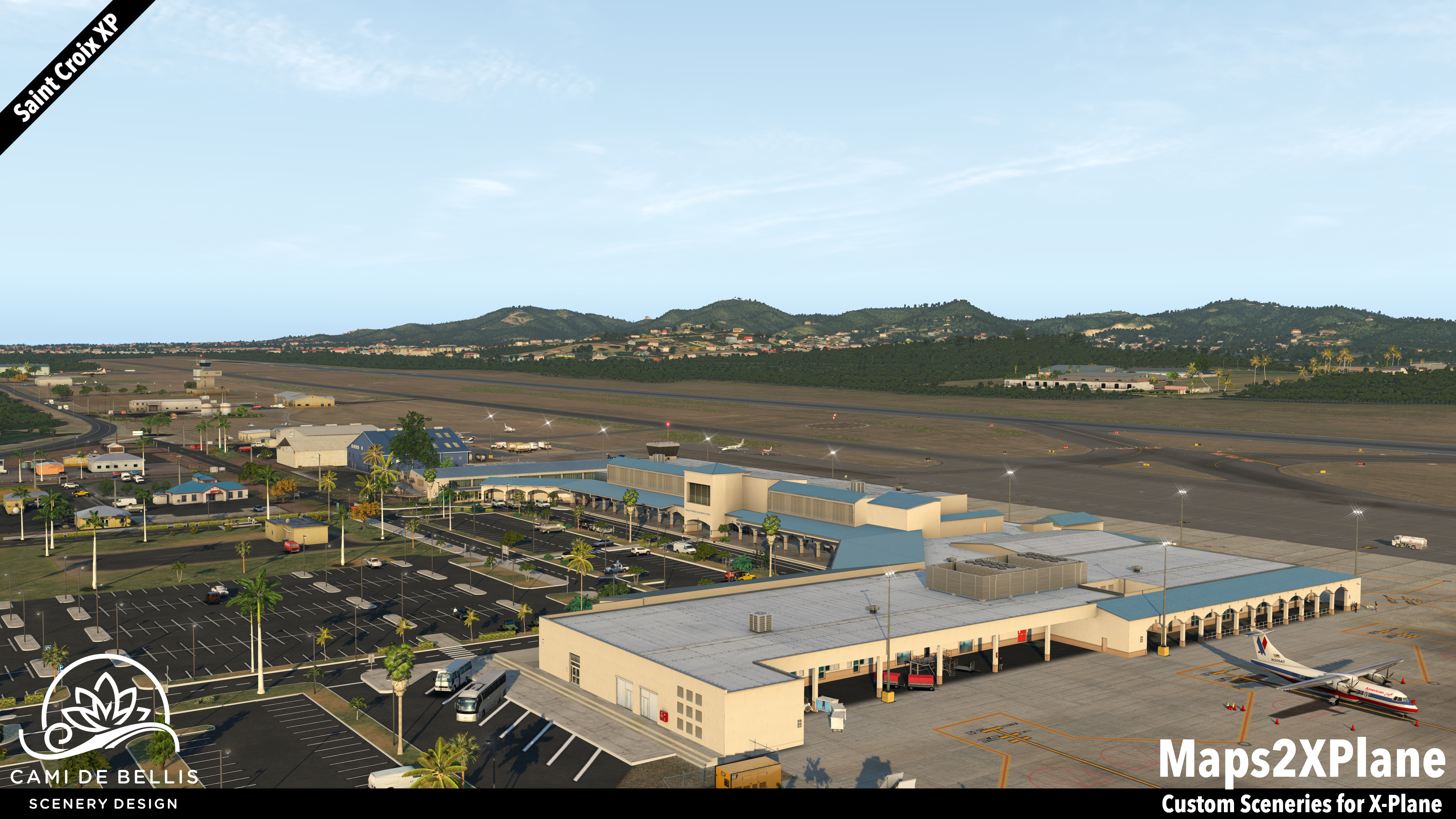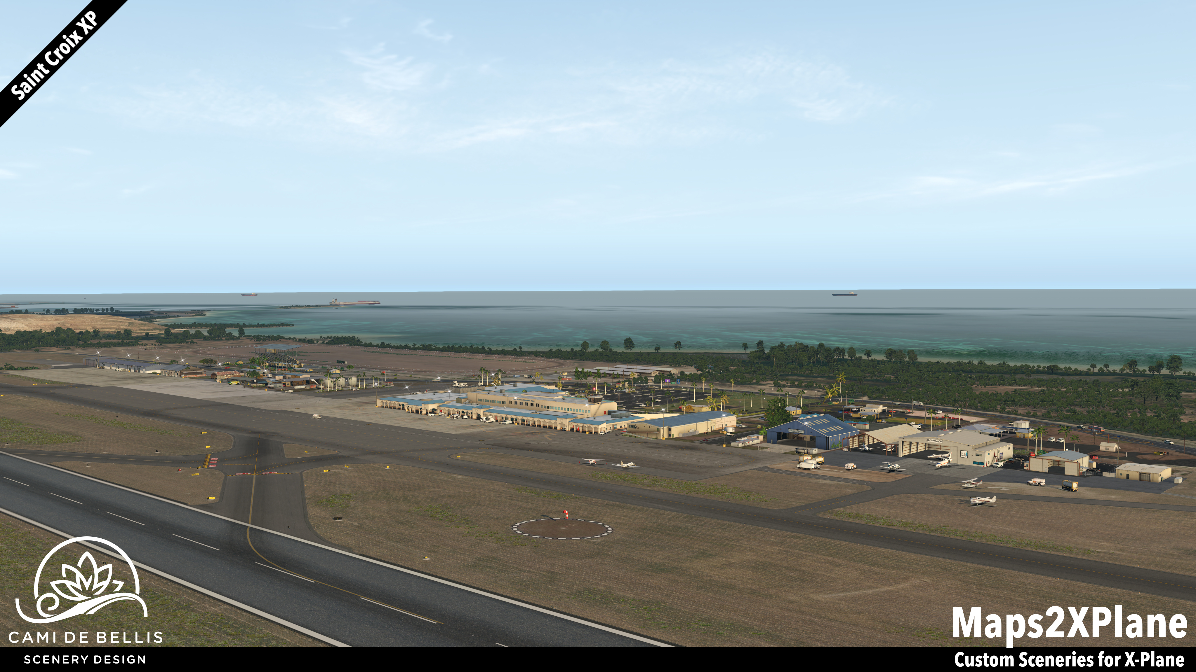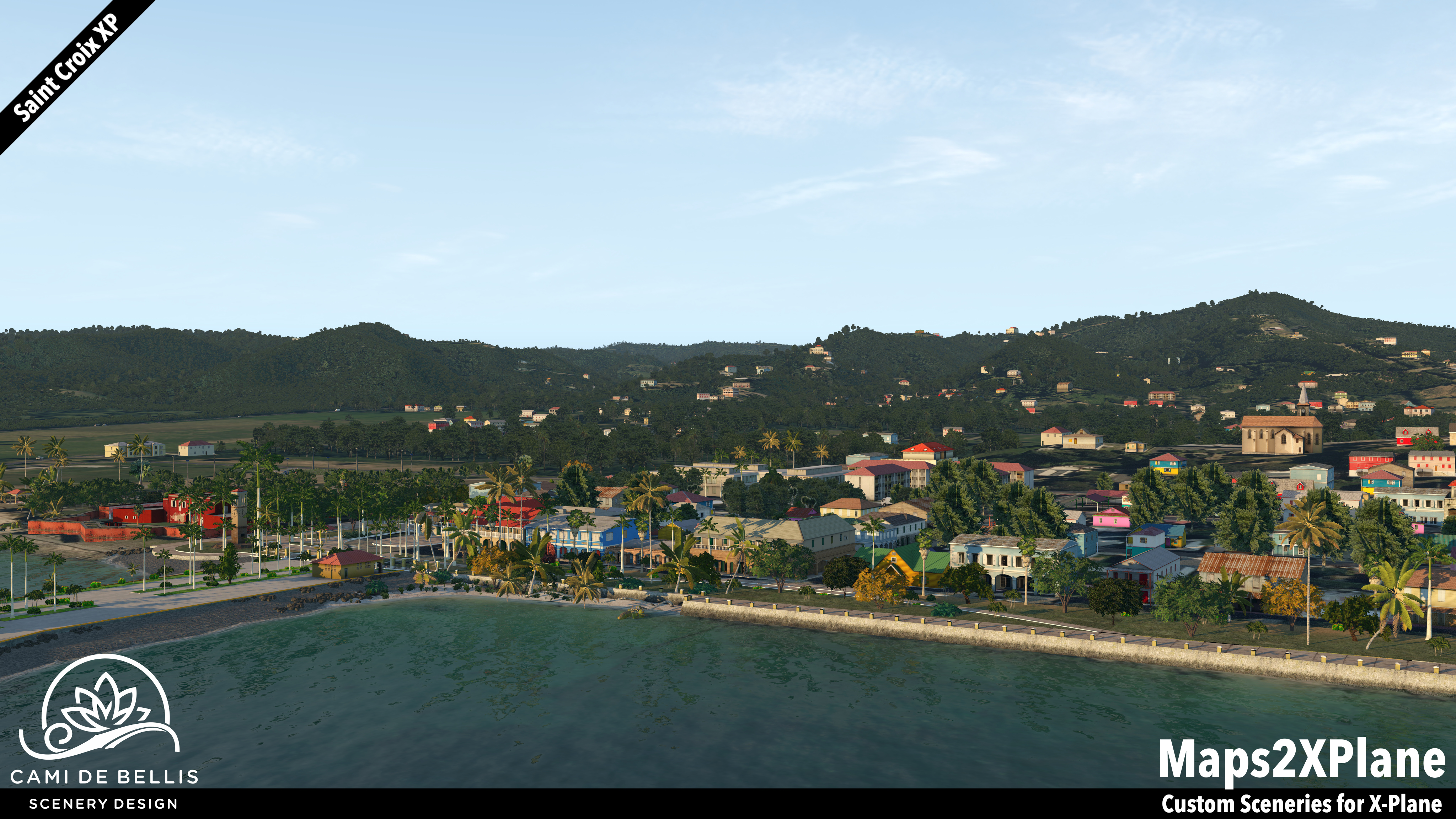 Welcome to Saint Croix, the largest island of the United States Virgin Islands in the Caribbean Sea. CDB Scenery Design (Cami De Bellis) in collaboration with Maps2XPlane are proud to present their newest scenery package for X-Plane, featuring a custom photo-terrain-mesh for the entire island and surrounding islets, with custom overlays (vegetation, road network and sea routes with dynamic traffic, autogen buildings) and a highly detailed rendition of the international Henry E. Rohlsen Airport. Renditions of Christiansted and Frederiksted, featuring selected landmarks and including the Seaplane Base, complement the immersive scenery.