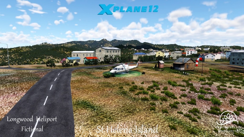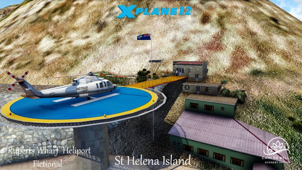 The scenery package features not only Cami’s detailed rendition of Saint Helena Airport, but also a custom terrain mesh for the entire island, as well as a custom overlays based on CDB Scenery Design assets by Maps2XPlane. Fictional heliports at Longwood House and Ruperts Wharf complement the scenery package: