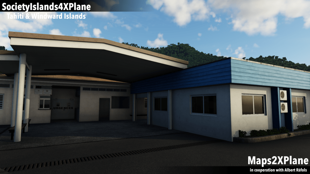 The three heliports belong to hospitals on Tahiti and Moorea. Namely, these are Taaone (NTHP), Taravao (NTHV) and Afareaitu (NTHF). Like the airports and airfields, the heliports have been implemented in exceptional detail, and are waiting for you to be discovered: Expect challenging approaches that give you the opportunity to prove your skills as an air medical helicopter pilot!
